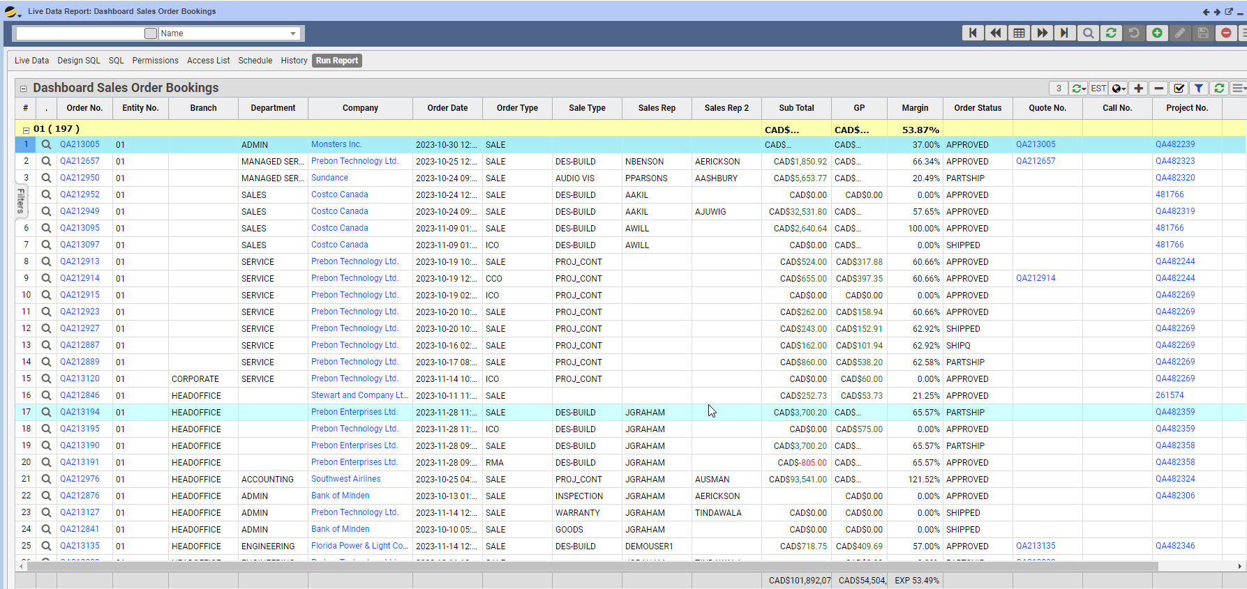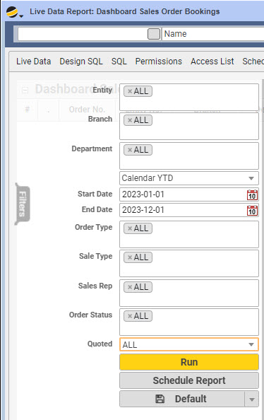Purpose: This report provides easy access to sales booked, by rep, for a period of time, and includes value and margins