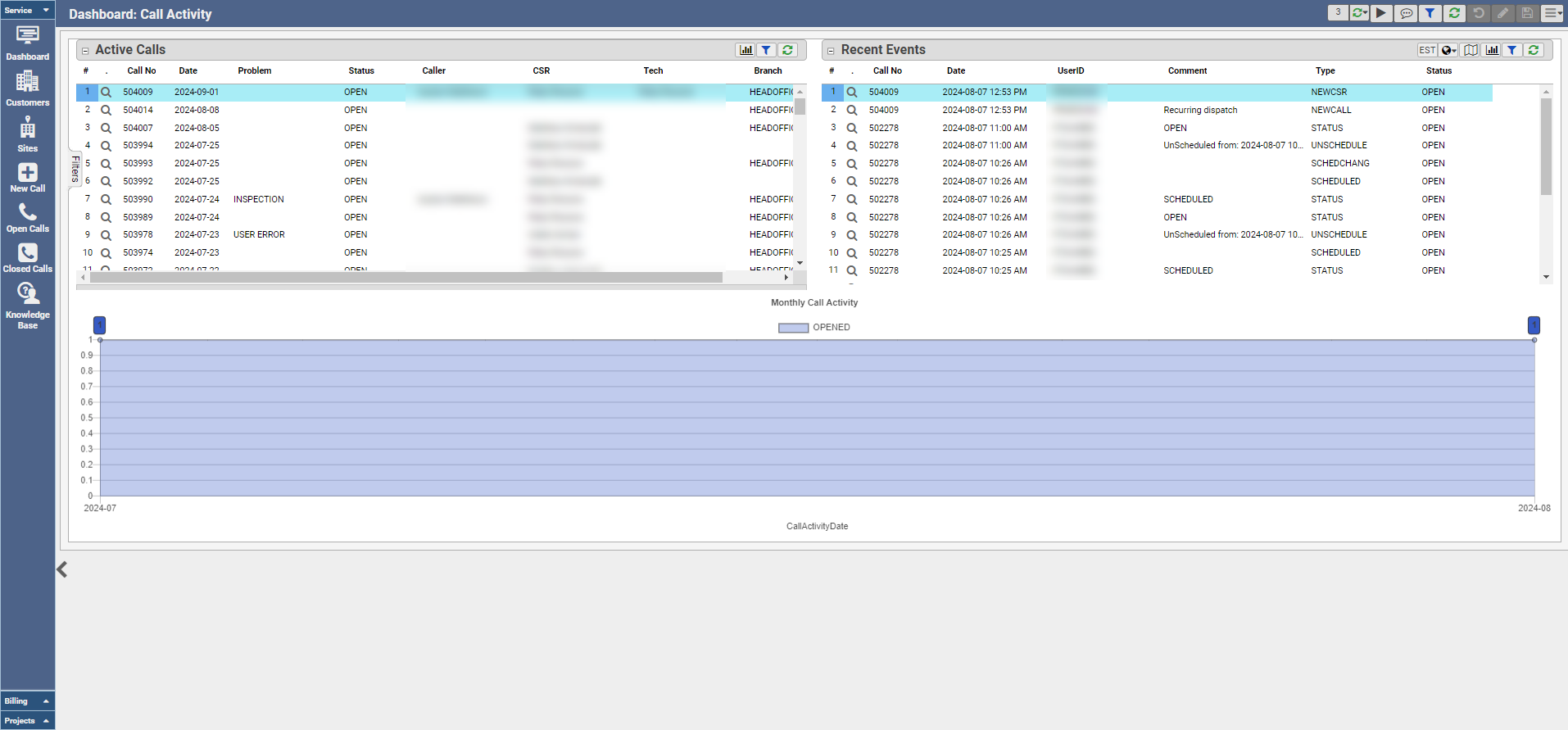 - View Monthly Call Activity graph