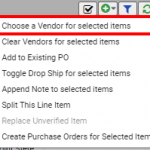 - Once back in the Purchasing Q, use the extended menu option Choose a Vendor for selected items and select Vendor B.