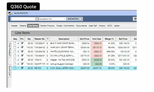 Changes include: Left tabs “Find Products” and ‘Quick Lists’, option to flag a line item as “optional” (not be included in Quote Sub Total), and Labor Factor and Difficulty definition for automating addition of Labor based on given MasterNo.